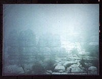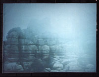 Felsenfest![]() Der halbstündiger Loop, ist die stille filmische Betrachtung eines Felsmassivs irgendwo. Die Felsen ruhen in sich. Nebel zieht auf und legt sich über die Steine. Die Steinlandschaft versinkt, scheint sich aufzulösen. Minutenlang sehen wir nur Weiss ein klares weisses Nichts. Die Installation integriert sich wie ein Bild in den Raum eines morbiden Speichers. "Begreife, dass die Form nur eine Illusion ist. Wir isolieren die Formen, wir können sie bestimmen und sie benennen, ohne zu wissen, dass sie nur Sequenzen eines ewigen Rythmus sind wie die Bewegung der ständig sich ändernden Welt." (Drukpa Rinpoche) |
