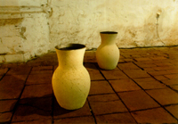 Videoinstallation, 1999 2 Tonkrüge gefüllt mit Wasser Zwei 30 minütige Videoloops 2 Minimonitore und Videoplayer |