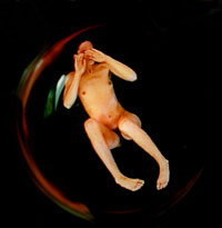 In der Tiefe von zwei Tonkrügen schweben im Wasser Frauenkörper. Schwerelos, versunken in sich, schwimmen sie wie Embryos in der Fruchtblase, jede für sich in ihrem eigenen Kosmos. Atem ist hörbar. |