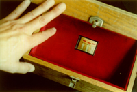 2 Videoobjekte, 2000 2 Holzkästen (30x17x19 cm) roter Samt 2 LCD Monitore, 2 Videoplayer | |