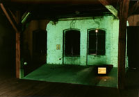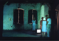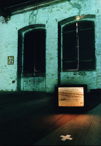 Die Winkende![]() Diese Installation versteht sich als Rauminszinierung, in die der Betrachter eintreten kann. Die Fenster sind geschlossen. Der Blick in die Ferne, nach draussen bleibt uns versagt. Wir befinden uns in einem projezierten Raum im Raum, in dem für die Verbindung nach draussen die nackte winkende Frau im Fernseher steht. Selbstvergessen und doch suchend versucht die Winkende im Kornfeld Kontakt zum Betrachter aufzunehmen. Geschieht dies hinter den Wänden des realen Raumes? An der Wand hängt eine Fotografie, die den vernarbten Körper einer alten Frau zeigt und drei Vogelnester liegen und schweben sich drehend im Projektionsraum. Alles intime Objekte im verschlossenen Kosmos, der nach Öffnung und nach Verbindung im Innen und Aussen ruft. |