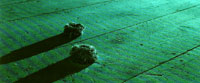 Video-Rauminstallation, 2002 Videoprojektion zweistündiger Videoloop drei Vogelnester, Drehmotor c-print 20x30cm, weisses Klebeband Monitor, einstündiger Videoloop | |