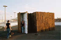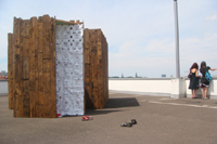 DIE HÜTTE #3 Zitate: "... das ist die Schöpfung und der Tod...." ( Besucher) "...in jeder HÜTTE eine andere Art der Intimität...." (Besucherin) "...einerseits ist man den fremden Besuchern vollkommen ausgeliefert und andererseits fühlt man sich unabhängig, unnahbar...." (Darstellerin) "....die meisten Besucher betreten den Raum und betrachten alles sehr gründlich. Sie scheinen etwas zu suchen. Sie scheinen zu denken: was muss ich tun um dieses Rätsel oder Problem zu lösen? Sie warten auf eine Reaktion, eine Bestätigung dafür etwas richt zu machen, oder wenigstens einen Hinweis was zu tun ist....Ich kann nicht sagen was in den Köpfen der Leute vor sich geht, aber es ist offensichtlich, dass sie diese Installation beschäftigt..." (Darstellerin) " .... man fühlt sich besonders. Die Besucher versuchen teilweise Blickkontakt herzustellen, aber man selbst entscheidet über die ganze Situation ... dadurch entsteht Spannung...." (Darstellerin) "....So ging eine Besucherin zunächst den Raum ab, setzte sich zu mir und legte sich hin. Ich hatte das Gefühl, dass sie sich in diesem Moment so ähnlich wie ich fühlte und so blieb sie auch recht lang mit mir liegen. Komisch war dann, dass ein weiterer Besucher rein kam und nun nicht nur ich sondern noch eine Besucherin dazu auf dem Boden lag......" (Darstellerin) www.diehuette.org |